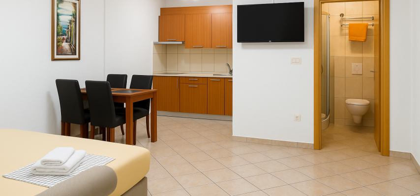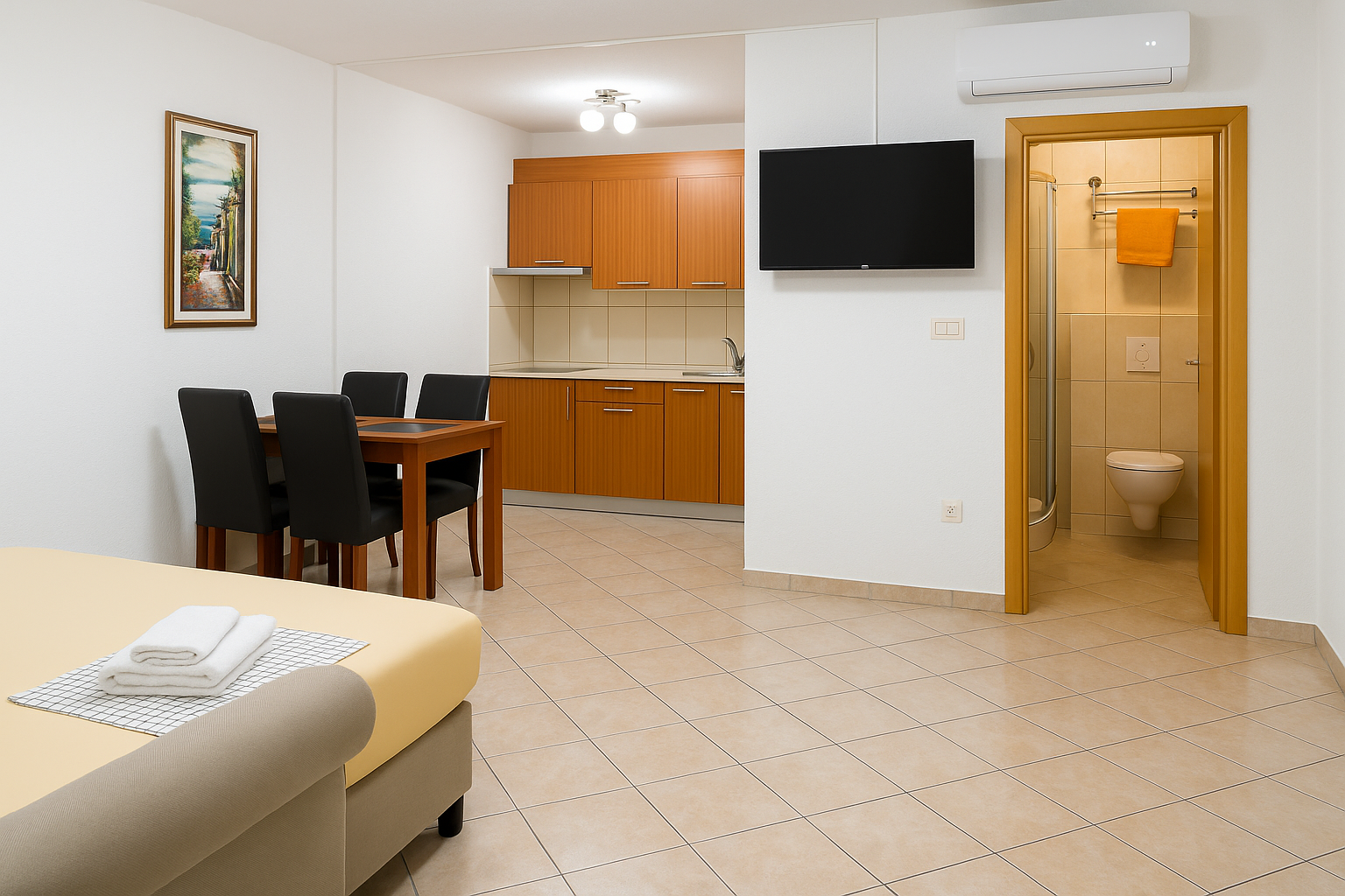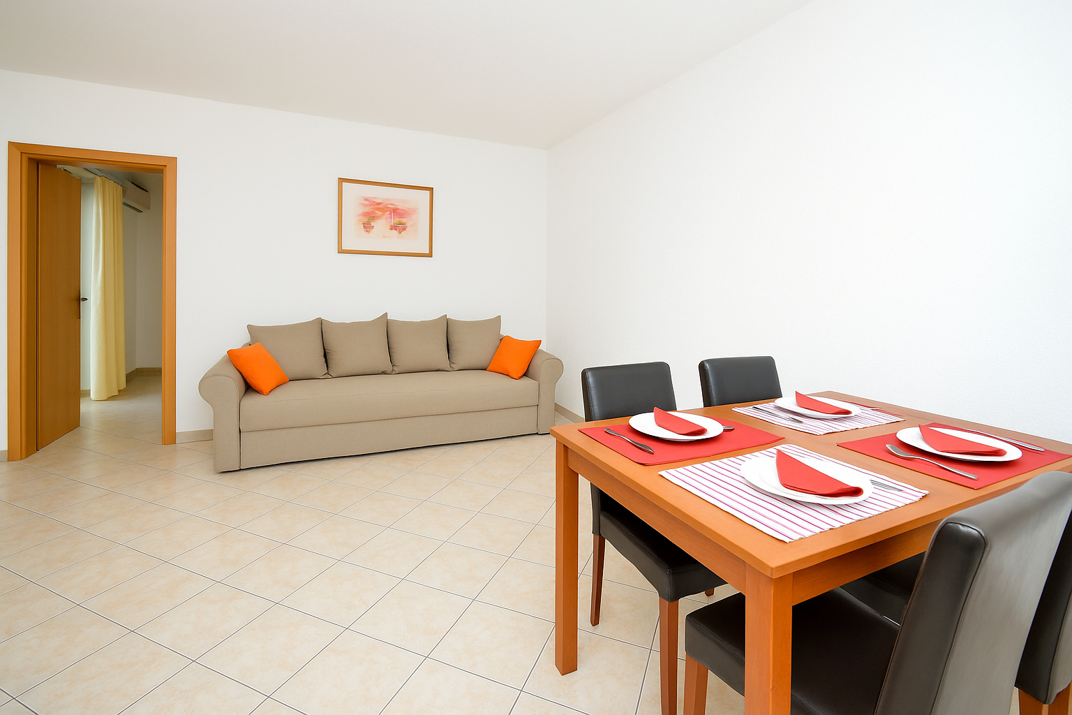 Tip(2+2) U Apartmanu Classic Villa Luna svojim gostima nudi udoban smještaj za do 4 osobe. Apartman Classic ima veliku terasu od 35m² i Jacuzzi. Apartman Classic ima poseban ulaz. U apartmanu se nalaze jedna dvokrevetna spavaća soba, dnevni boravak s namještenom kuhinjom i kaučem na razvlačenje te kupaonica s tušem.