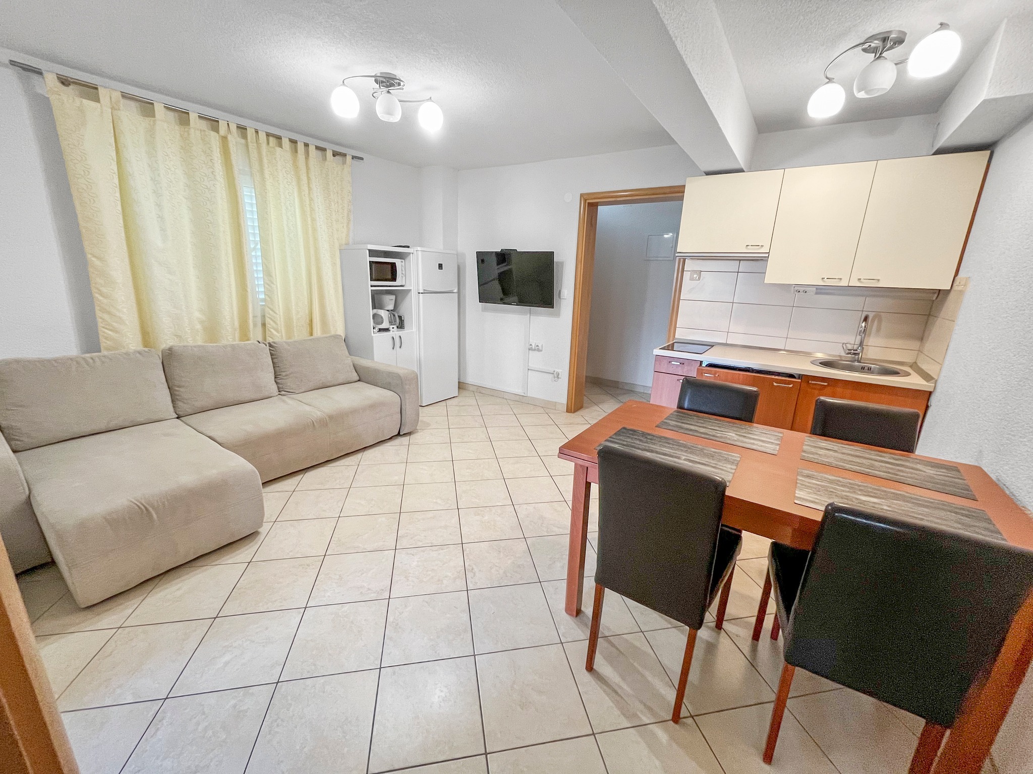 Typ(4+1) Allein an dem Namen dieses Appartements kann man erkennen, dass es ideal für Familien ist. In diesem Familien-Suite bieten wir unseren Gästen eine komfortable Unterkunft für bis zu 5 Personen. Das Appartement Family hat eine Terrasse mit Meerblick, zwei Schlafzimmer, ein Wohnzimmer mit der Küche und dem Essbereich und ein Badezimmer mit der Dusche.